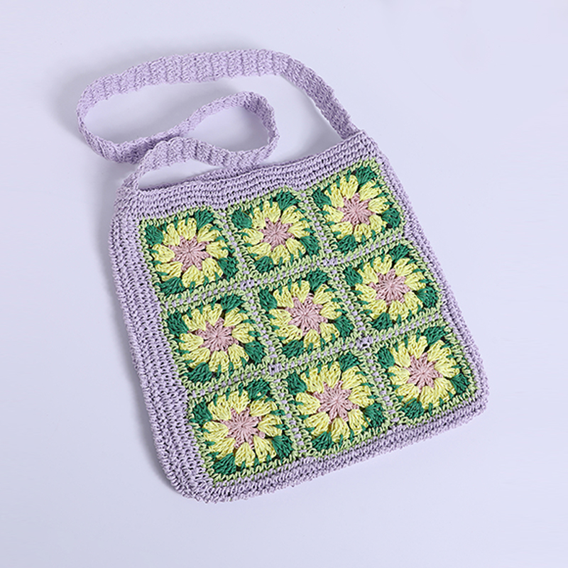 产品:彩色手工钩针纸莎草花手工纸莎草袋