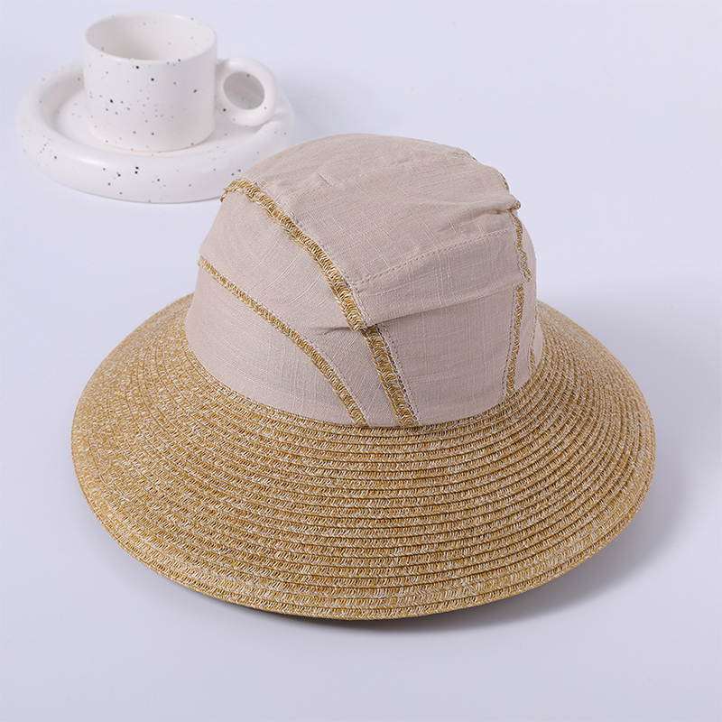 产品名称: 拼接布草帽春夏新款休闲沙滩帽编织女式日本太阳帽户外遮阳太阳帽