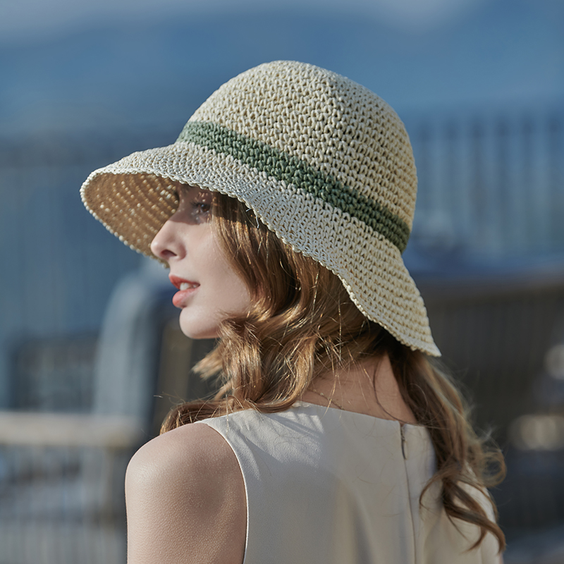 65厘米的帽檐特别适合夏季阻挡阳光直射,防止晒伤。它可以与遮阳伞的遮阳效果相媲美。帽子可以随意折叠,方便携带!帽檐处有一根金属丝,可以任意弯曲。帽子的材质是进口纸莎草,由纯纸莎草手工编织而成。