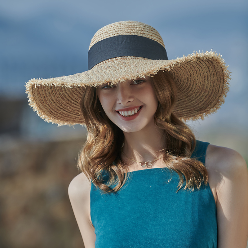 15厘米的帽檐特别适合夏季阻挡阳光直射,防止晒伤。它可以与遮阳伞的遮阳效果相媲美。帽子可以随意折叠,方便携带!帽檐处有一根金属丝,可以任意弯曲。帽子的材质是进口的拉菲草,纯纸莎草手工编织而成。