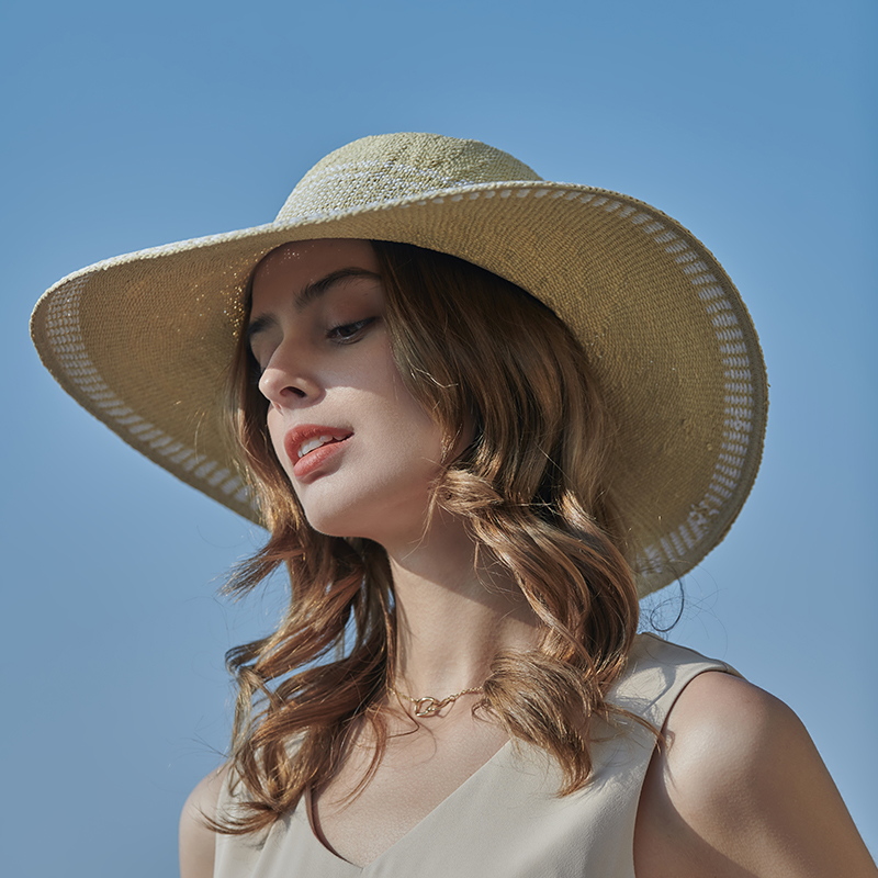 11厘米的超大帽檐特别适合阻挡阳光直射,防止夏季晒伤。它可以与遮阳伞的遮阳效果相媲美。帽子可以随意折叠,方便携带!帽檐处有一根金属丝,可以任意弯曲。帽子的材质是进口纸莎草纸,不是纯草编的,因为是机编的,纯头比较薄。